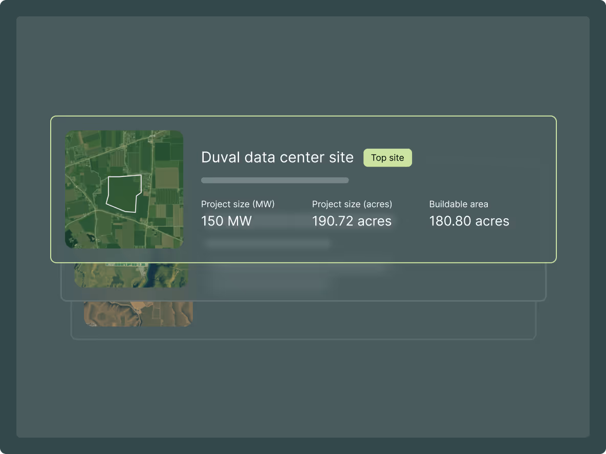 Search millions of parcels, analyze risk constraints, understand grid potential, and advance your project pipeline — all through a single integrated platform that accelerates your projects to shovel ready.