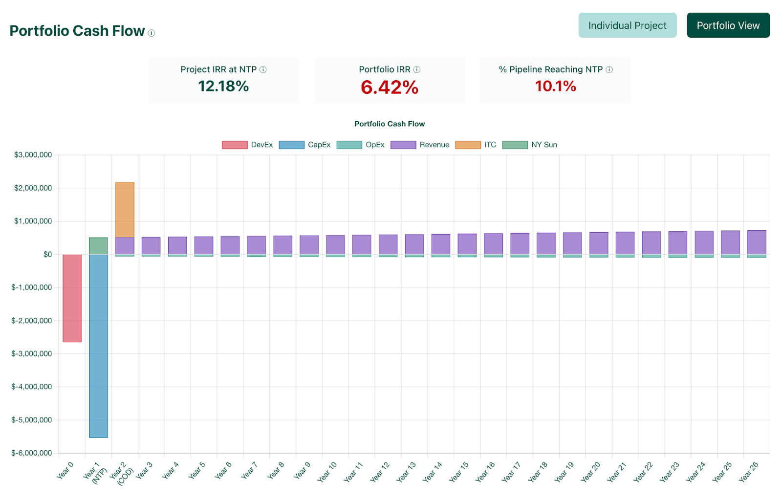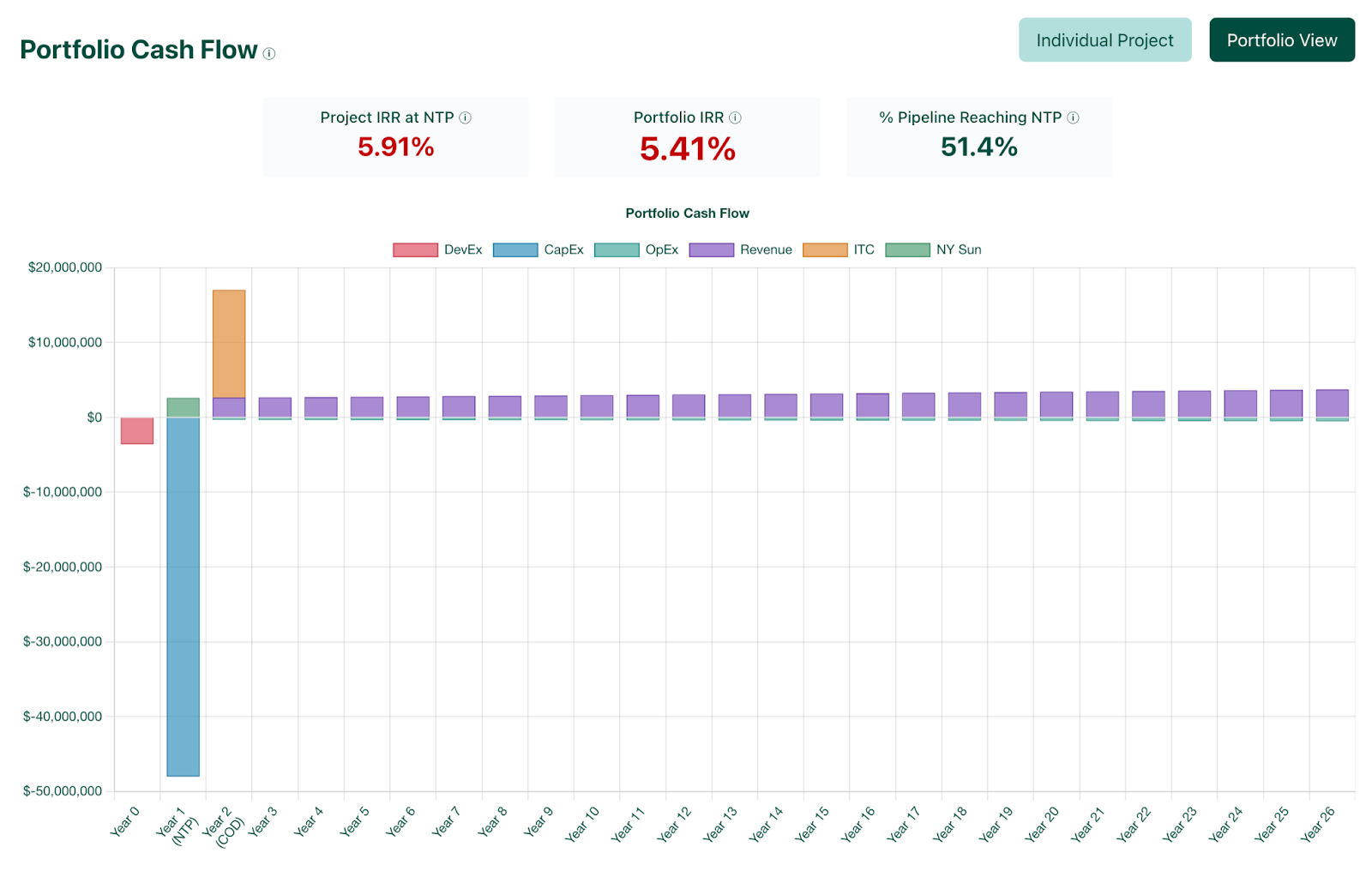 As projects progress through development, developers must continuously evaluate two parallel risks: first, the possibility that a project will be prevented from being built outright, and second, that rising costs could push an otherwise viable project below its target internal rate of return (IRR). To manage these uncertainties, most developers maintain a lightweight financial model for each project in their pipeline as well as their total pipeline, constantly updating assumptions as new information becomes available.